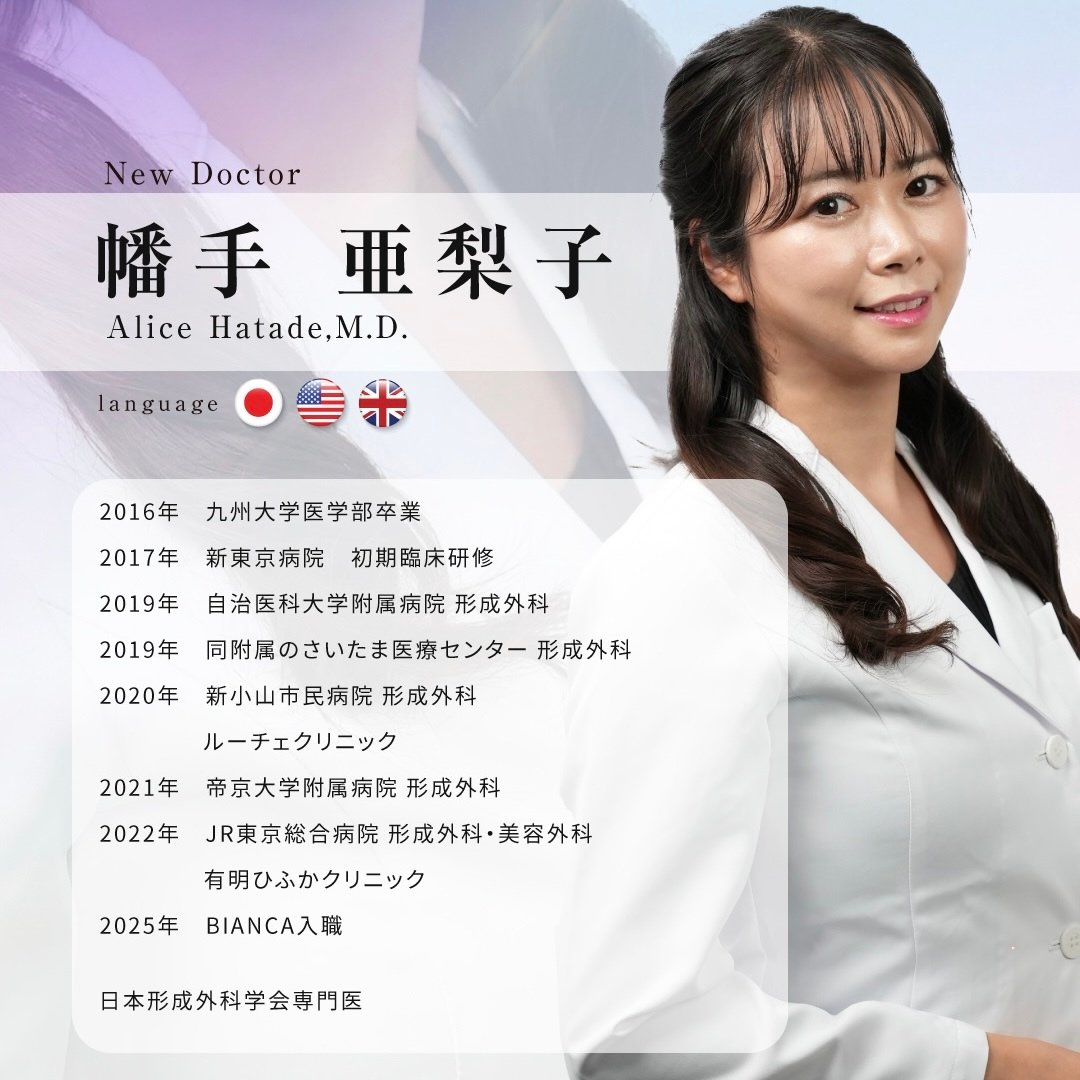 【NEWS】形成外科専門医・幡手亜梨子医師がBIANCAに仲間入り❣️