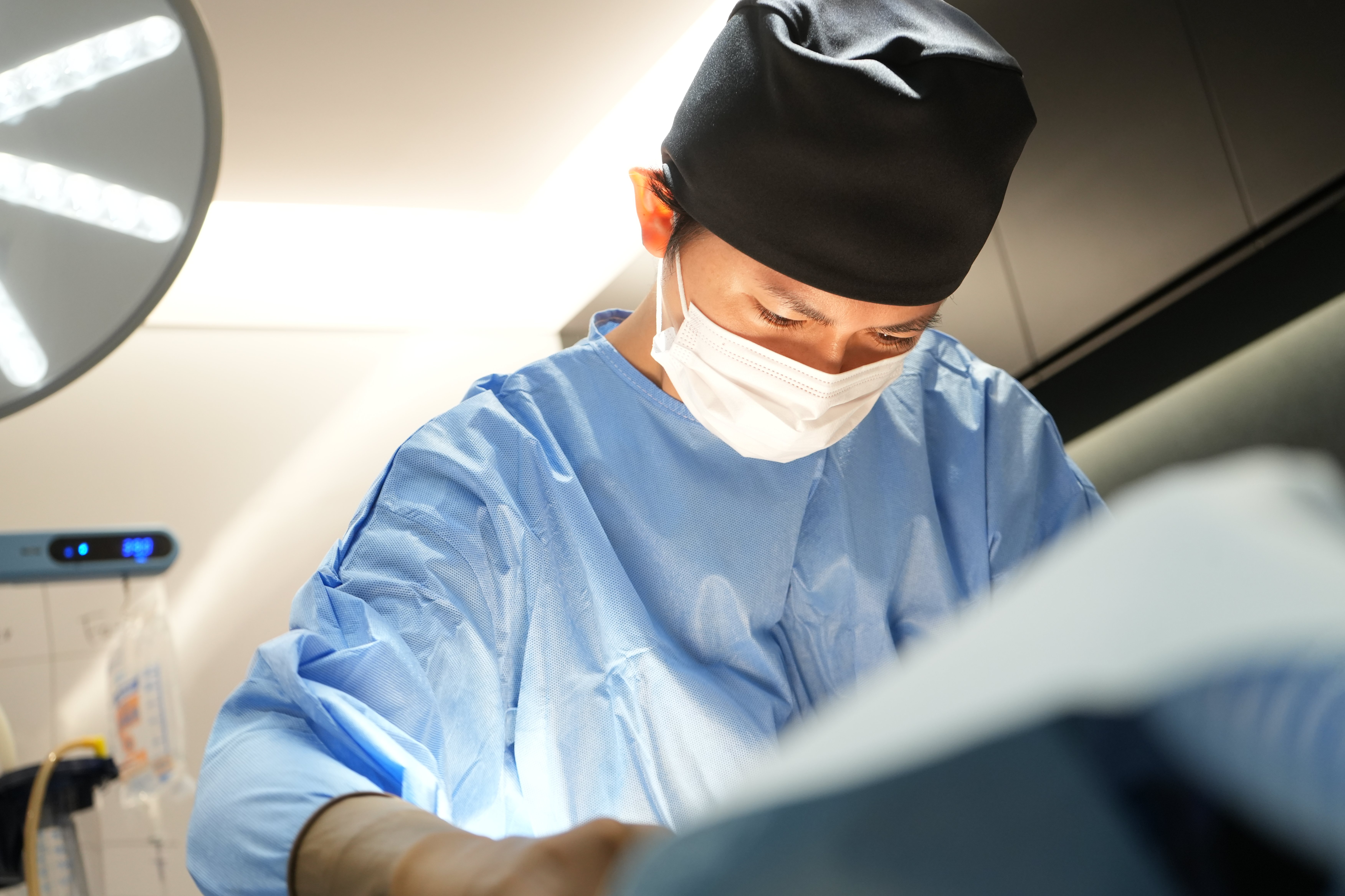 麻酔を行って施術を始めます。手術時間30〜40分ほどです。局所麻酔でも手術可能ですが、主に静脈麻酔を使用します。痛みに強い不安がある方は、希望に応じて全身麻酔を使用することも可能です。