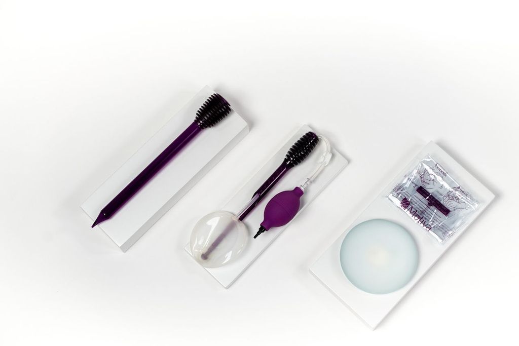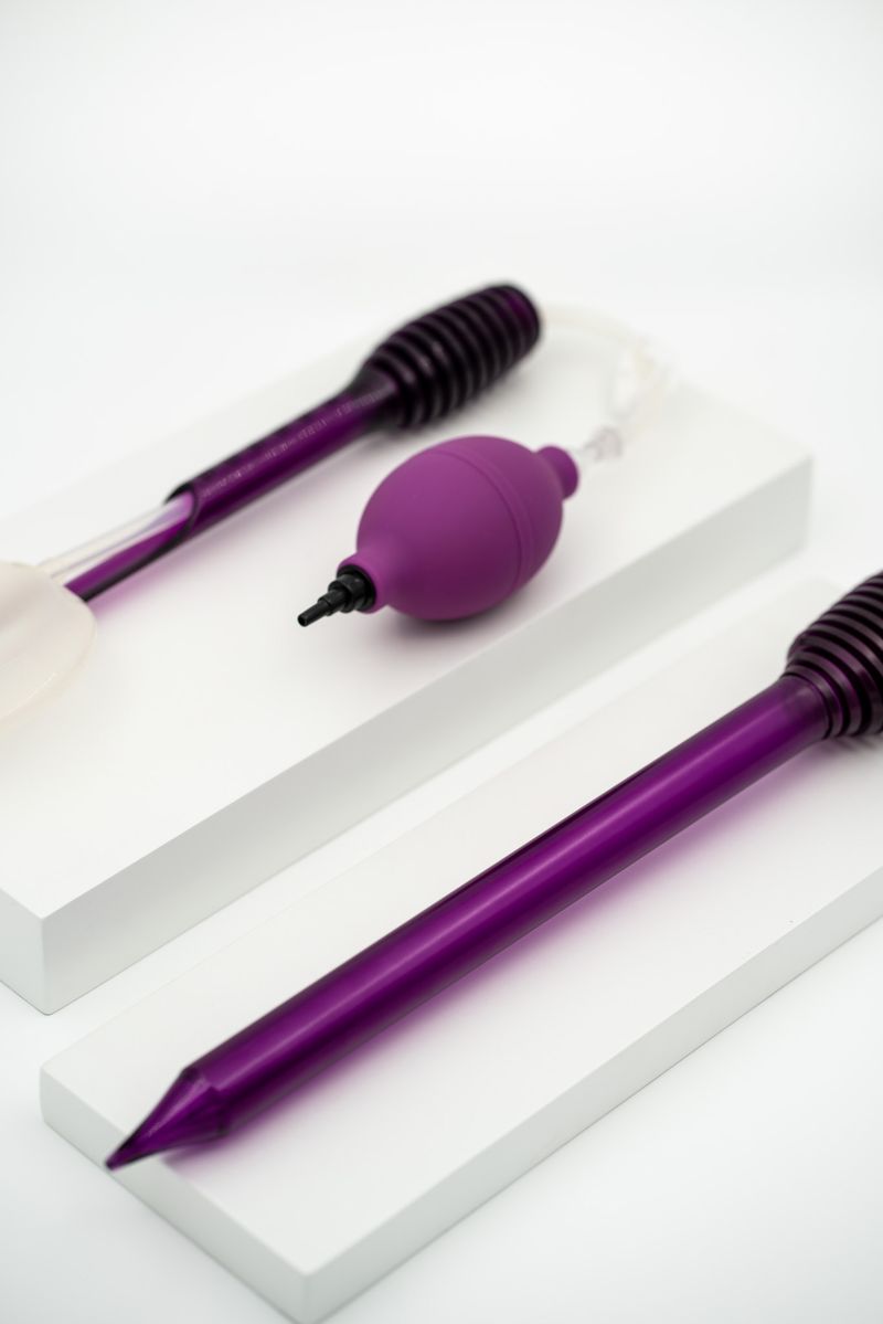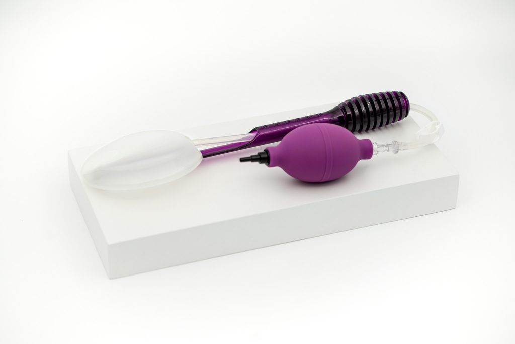 プリザベでは、アンダーバストの位置に2.5cm程度の切開を行い、専用の器具を挿入。こちらの器具は、乳房内部の組織を分離しやすくし、なるべく他の組織を傷つけないように、次に挿入するバルーンのためのスペースを作ります。バルーンを挿入する器具も乳房内部の組織を傷つけにくい構造になっており、放射状にやさしく押し広げます。
