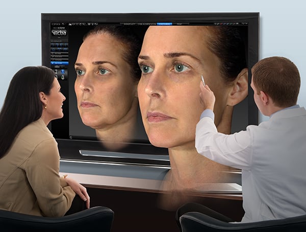 患者様によって理想のイメージは様々で、ご要望を正確にドクターへお伝えいただくことは容易ではありません。ベクトラを使用することで、画面上の立体画像をもとに数ミリ単位で施術後のお顔をシミュレーションし、患者様のご要望をその場で反映させて、全ての角度から確認することが出来ます。施術前カウンセリングで、患者様と医師が施術後のイメージを共有し、治療方針を決めることで施術後のイメージギャップを解消し、患者様にとってより満足度の高い施術を可能にします。