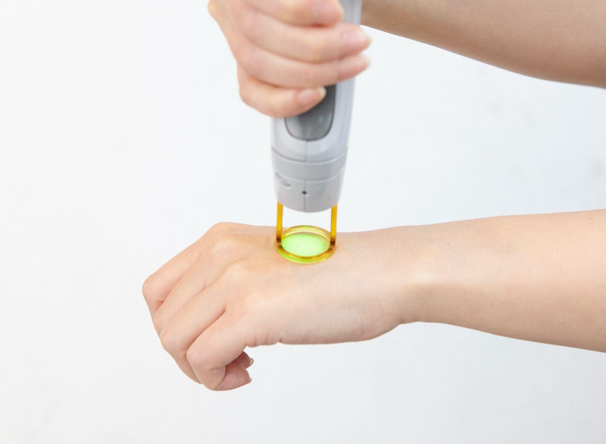 照射直前に-20~-26℃の冷却ガスを噴射し、痛みと肌への熱による負担を緩和する仕組みです。