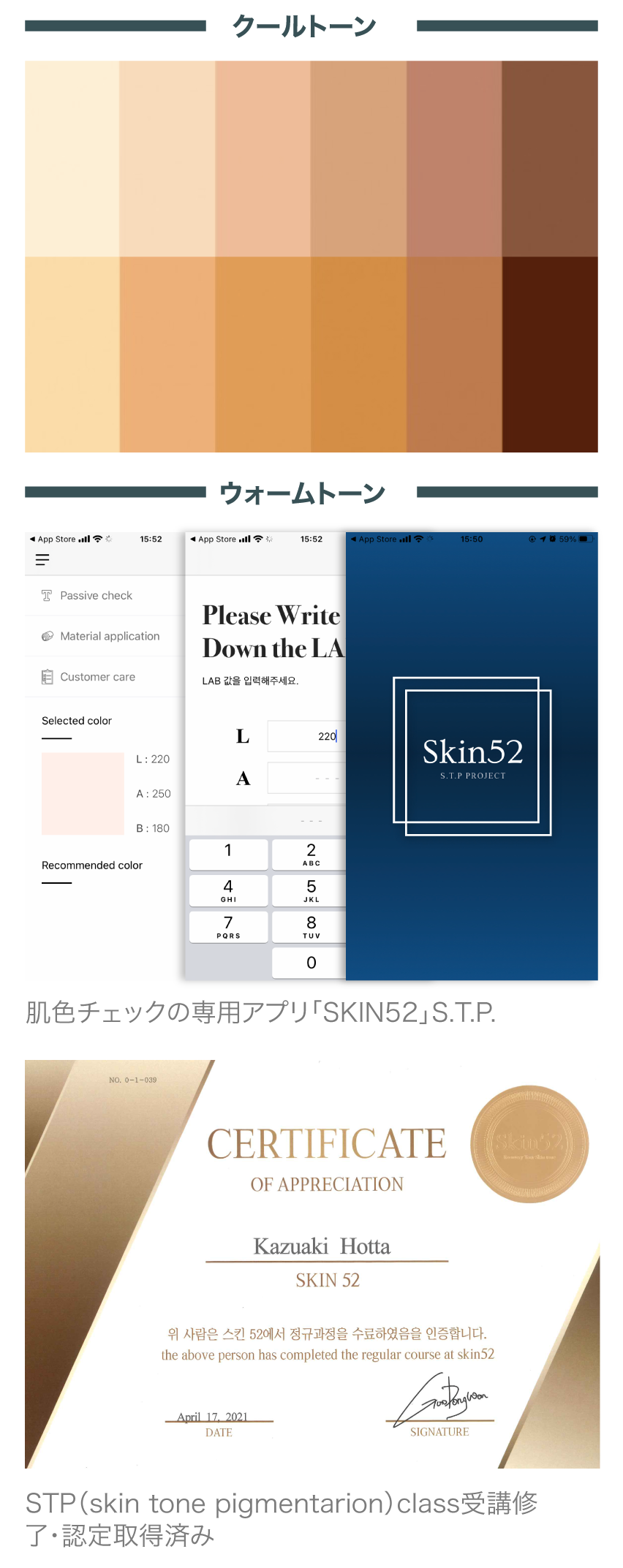 患者様のスキントーン(お肌の色)に合わせたカラーを選定します