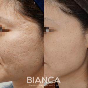 左:施術前、右:施術後、施術内容:ヴァンパイアフェイシャル(PRP+ダーマペン3回)