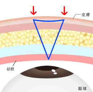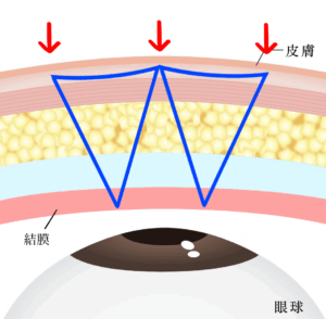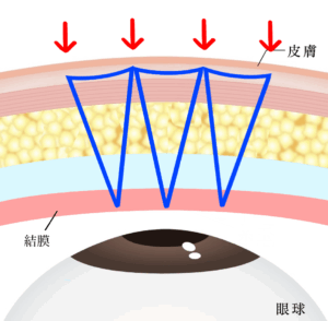 → 2方向から力がかかり、瞼板が歪むリスクがあります。