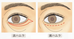 つまり、皮膚のたるみの有無によって“表 or 裏”を選ぶだけで、核心となるハムラ法の処置は共通というイメージです。