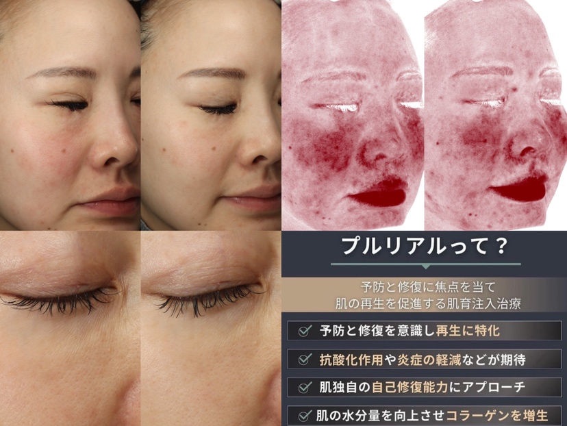 这种皮肤生长注射疗法侧重于预防和修复,促进皮肤再生。它旨在通过刺激胶原蛋白的生成和支持皮肤自身的自我修复能力来改善皮肤健康,而不是简单地增加皮肤水分含量。 诊所引进了 Pluryal Densify,这是一种多核苷酸(PN)、非交联透明质酸和甘露醇的组合。 Pluryal 治疗的优点包括改善整体皮肤暗沉、减少细纹和皱纹、提高皮肤紧致度和光泽度,以及改善色素沉着和发红(与慢性炎症有关的发红)。