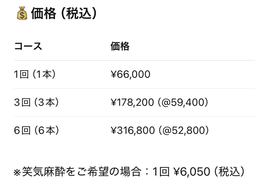焦虑的人还可以选择笑麻醉(+ 6050 日元,含税)。
