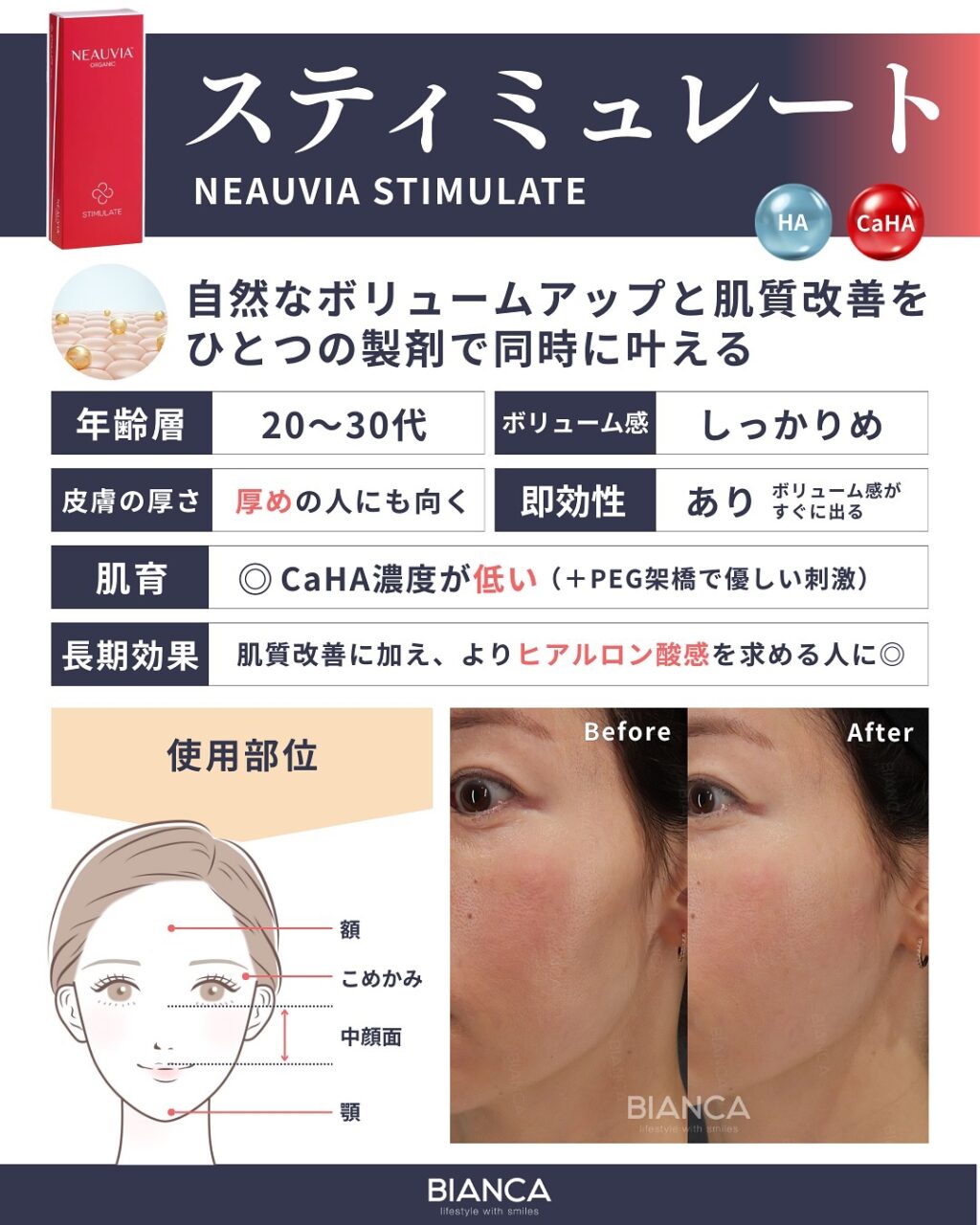 普通透明质酸 "随用随补",而 Stumulate 含有钙粒子(CaHA),能刺激胶原蛋白的生成。