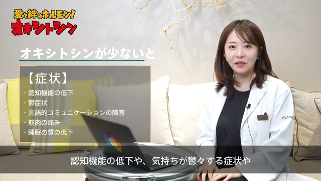 このように、オキシトシンが減ると心にも身体にも不調をきたす可能性があります。気持ちが鬱々とする、言葉が流暢に出てこない、寝つきが悪いなどの症状は、もしかするとオキシトシンが少なくなっているからかもしれません。