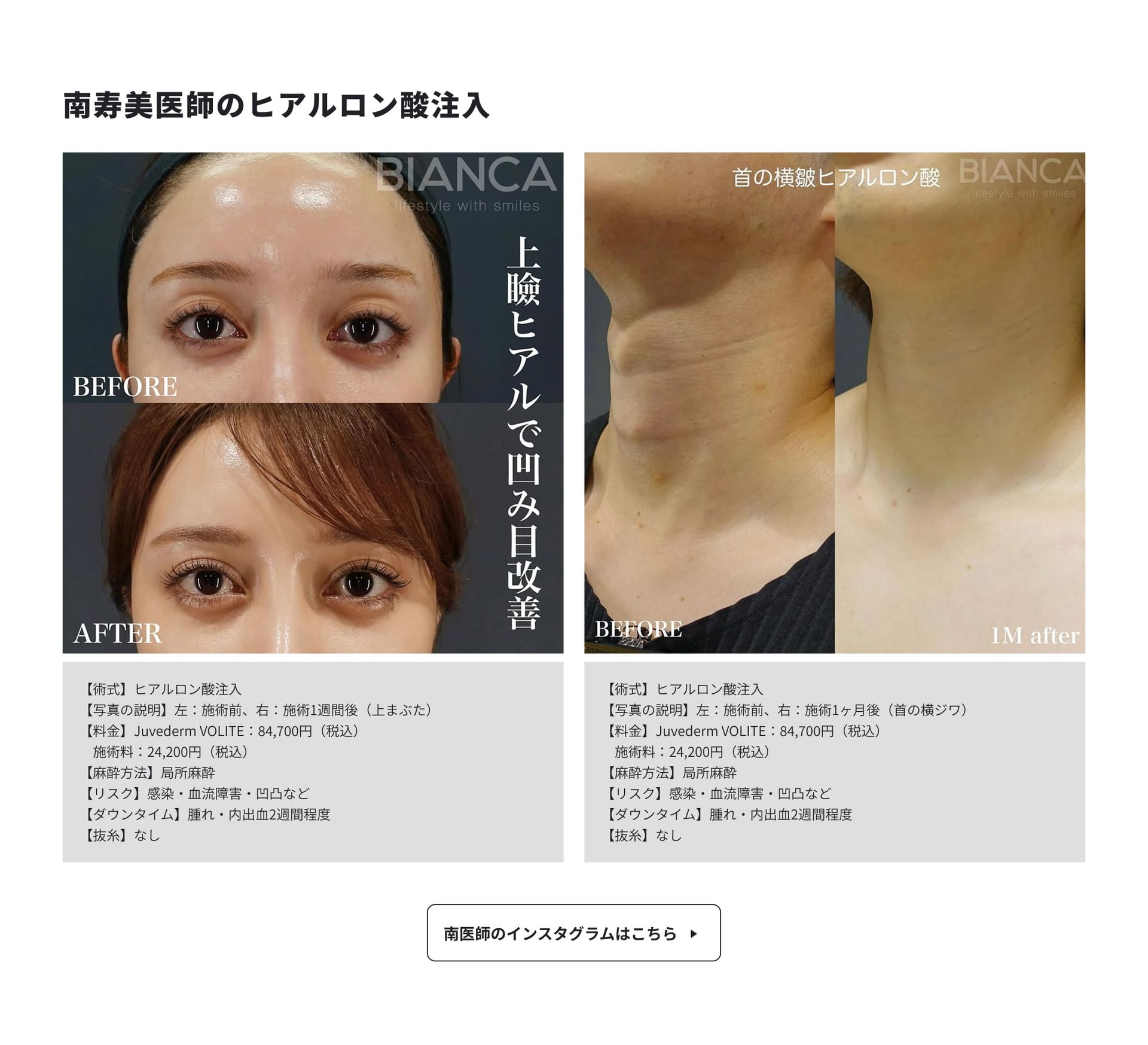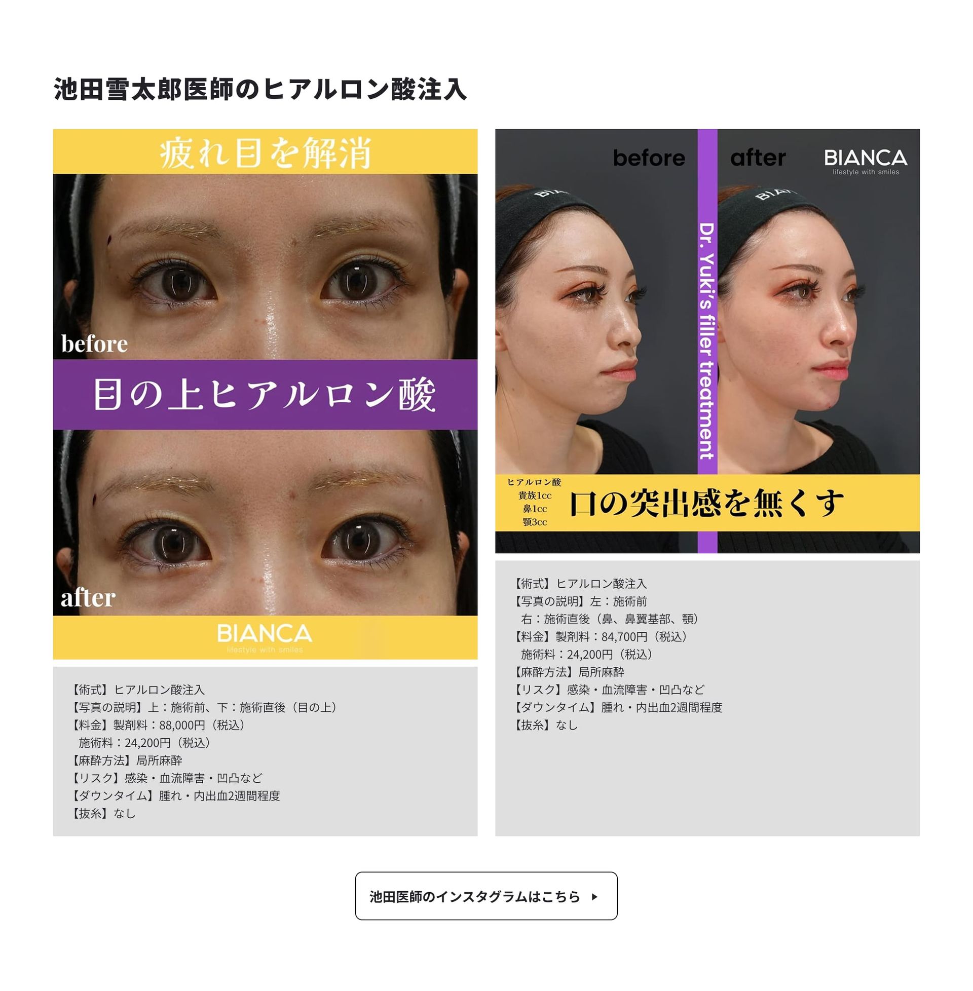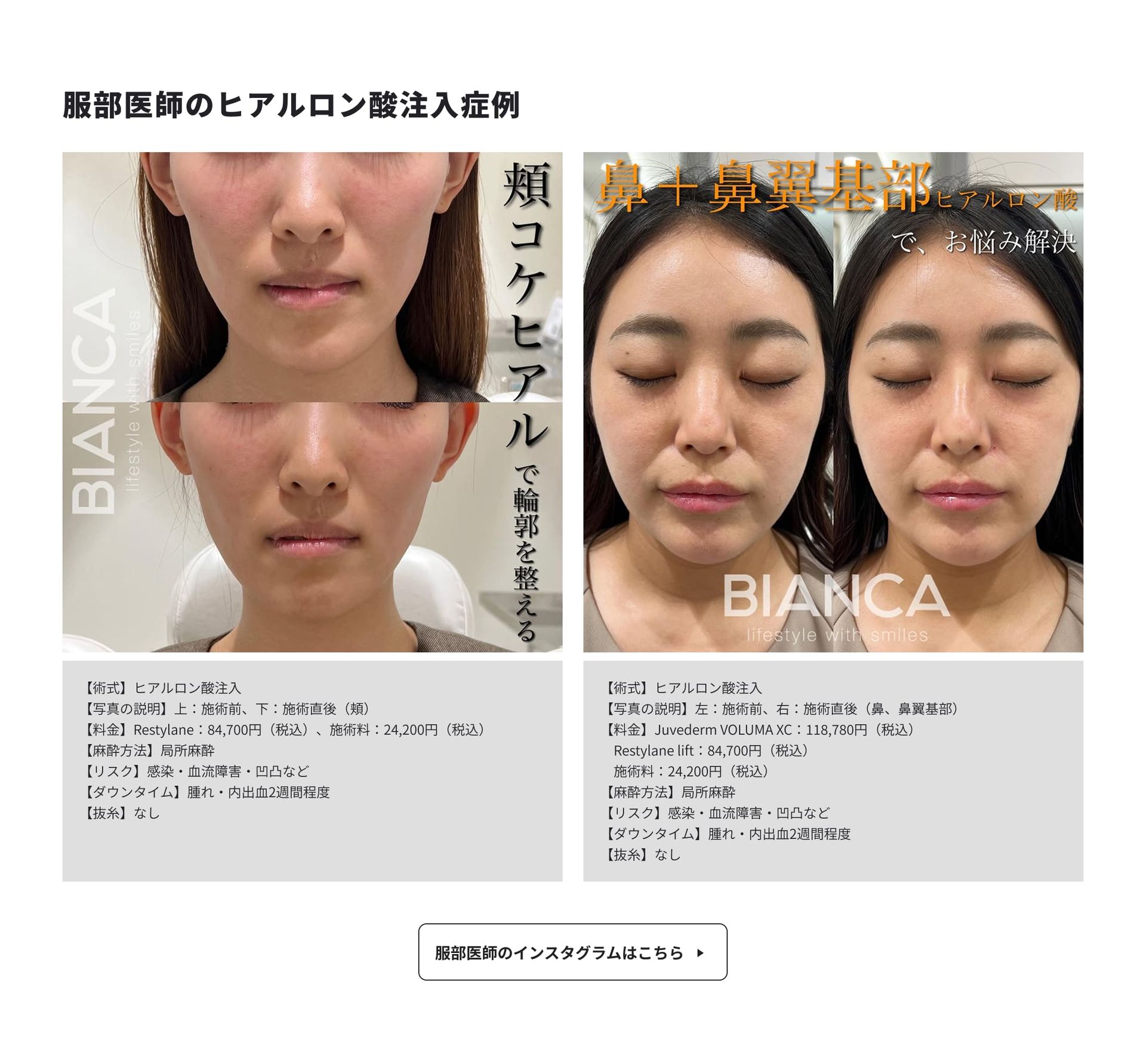 BIANCA医生们均能以高水准复现BIANCA式玻尿酸疗法,无论由哪位医师负责,都能提供同等品质的技术服务——这正是BIANCA诊所独有的特色。