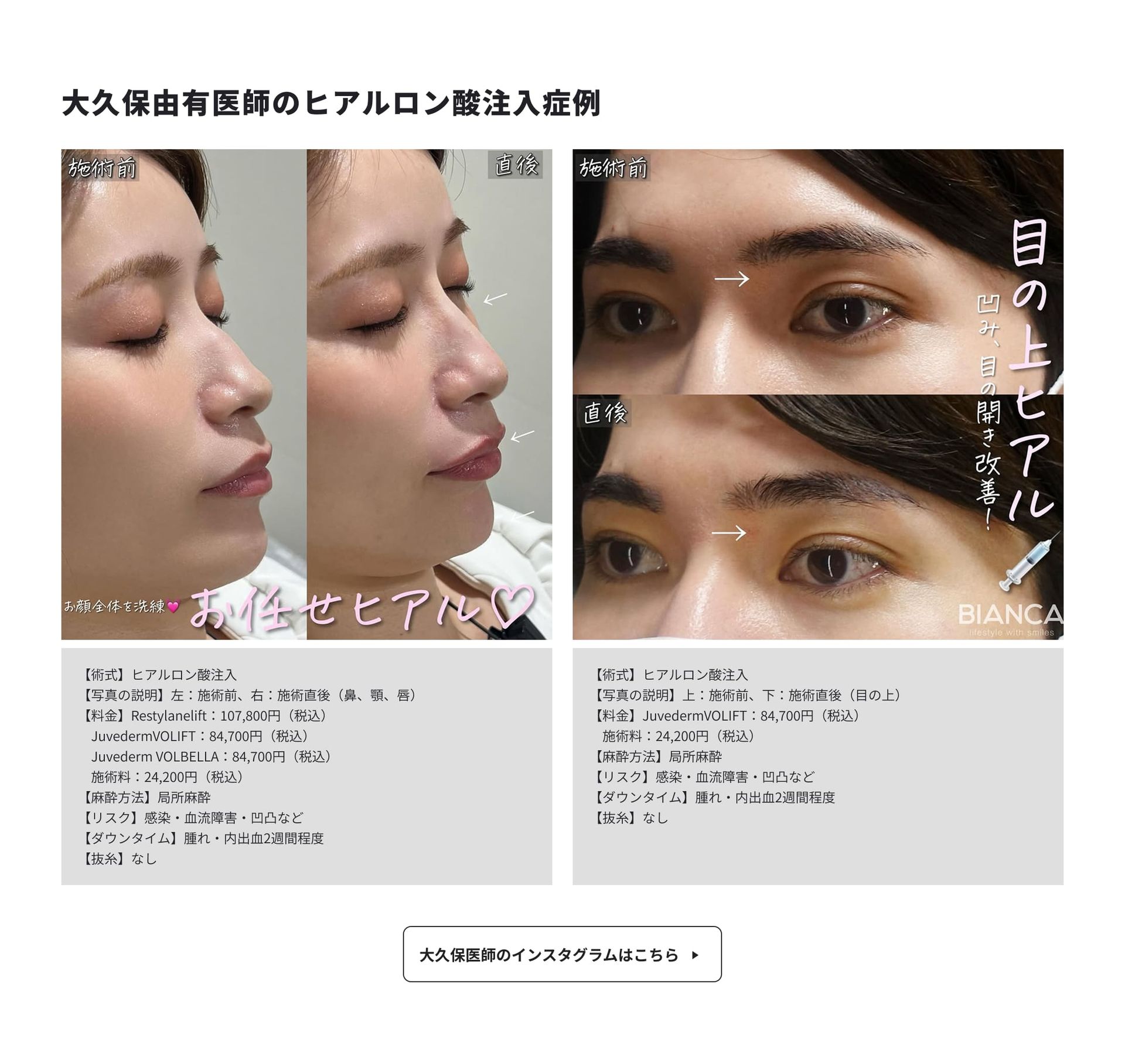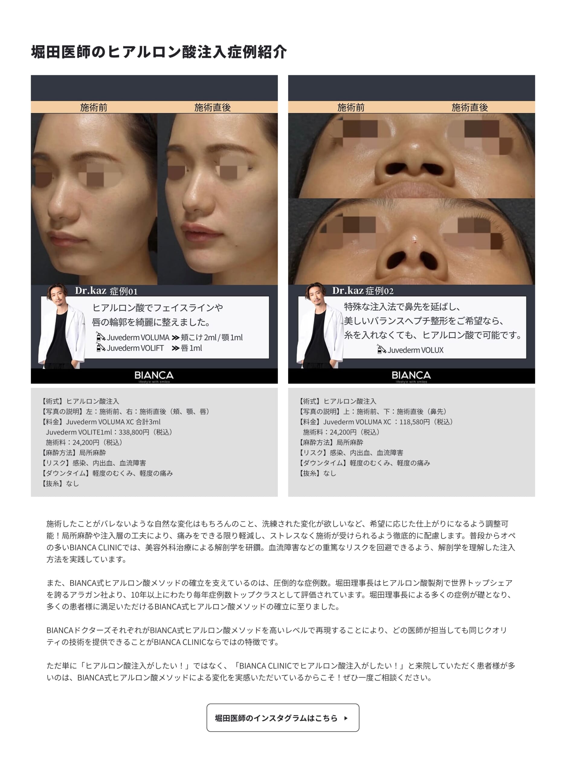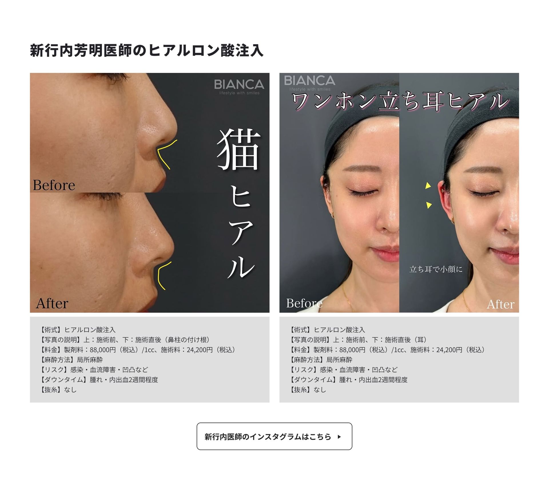 BIANCA医生们均能以高水准复现BIANCA式玻尿酸疗法,无论由哪位医师负责,都能提供同等品质的技术服务——这正是BIANCA诊所独有的特色。
