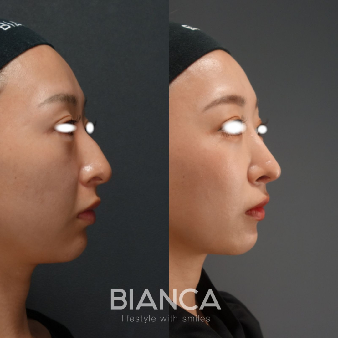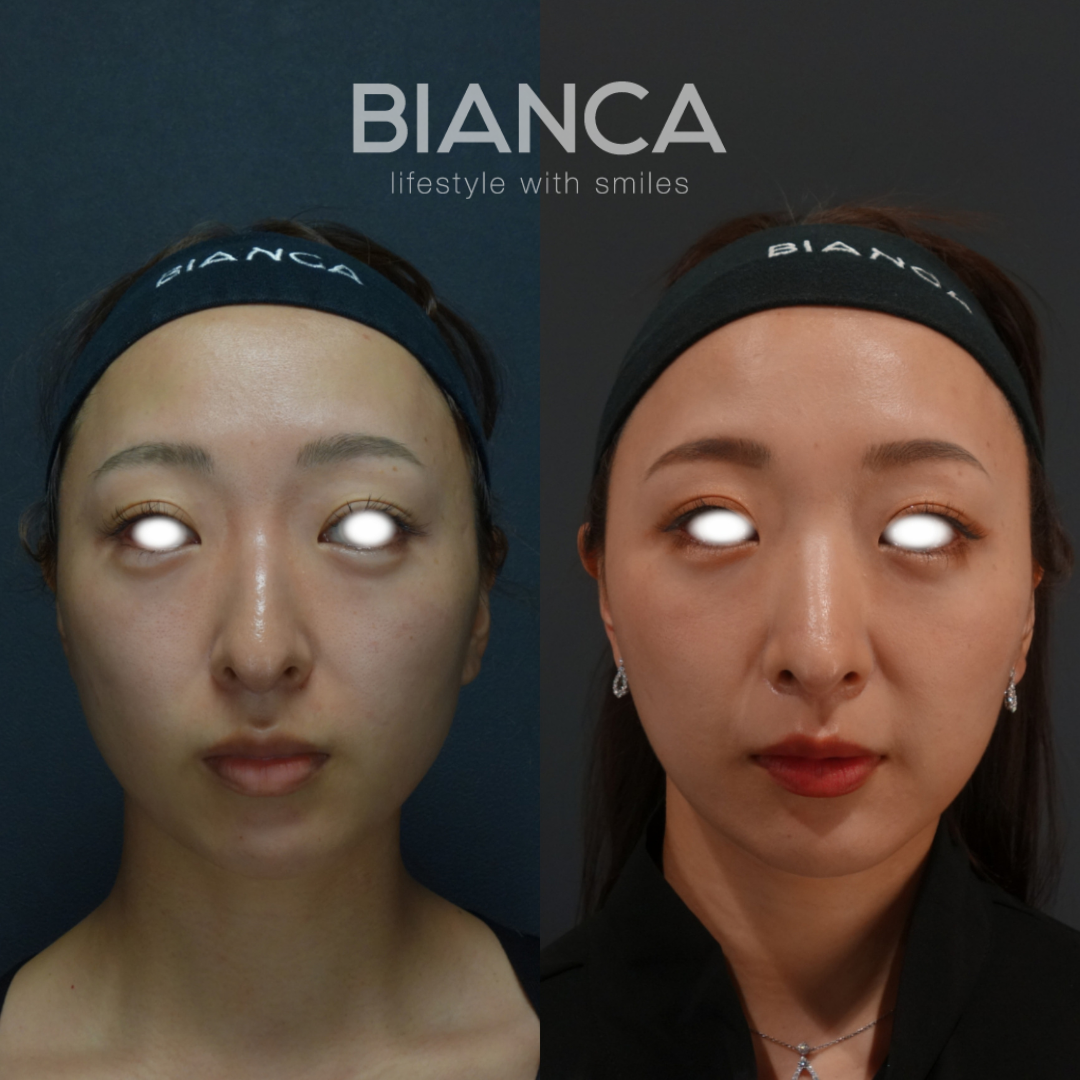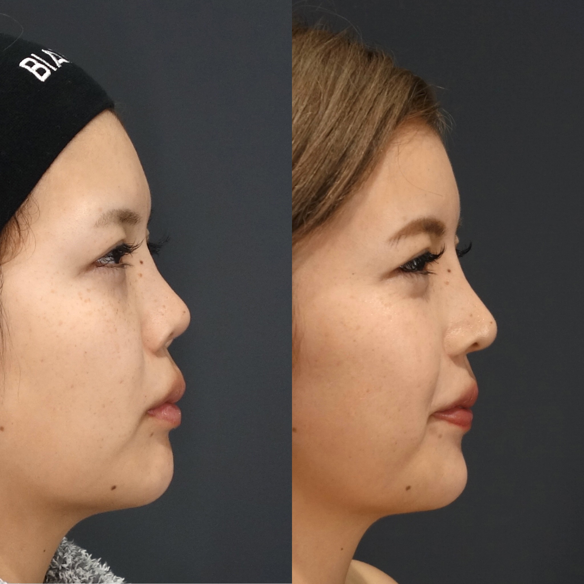 鼻中隔延長(耳介軟骨)×鼻尖形成×鼻プロテーゼ(特注)×額こめかみ・目の下脂肪注入