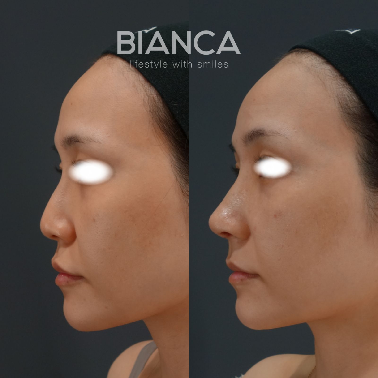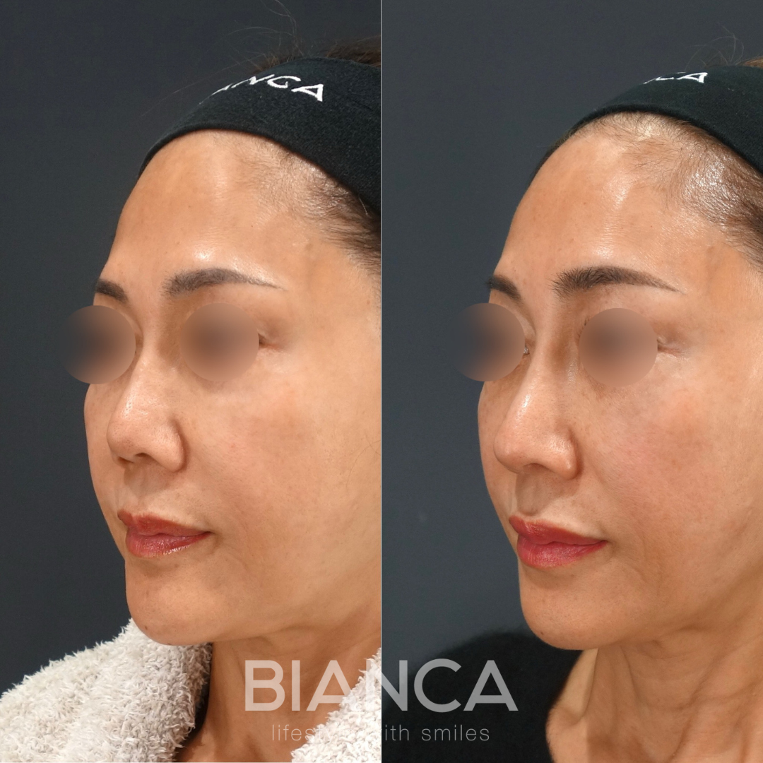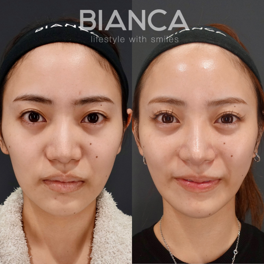 鼻中隔延長(耳介軟骨)×鼻尖形成×鼻プロテーゼ(特注)×額こめかみ・目の下脂肪注入
